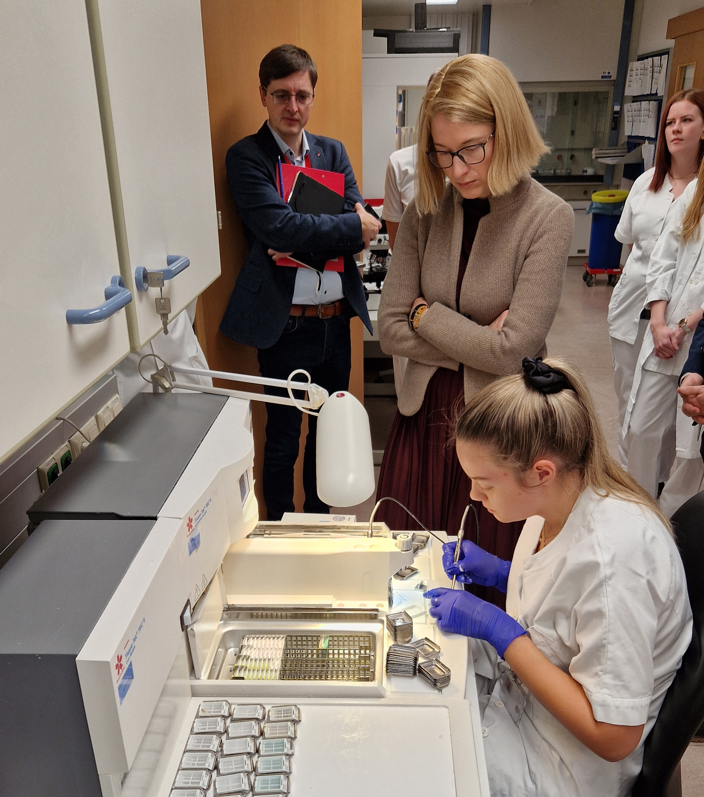 Am Med Campus führte der Rundgang der Gesundheitslandesrätin unter anderem in die Pathologie, die Neonatologie, die Dermatologie, das Labor sowie in den Geschäftsbereich Personal. „Der persönliche Austausch mit den Mitarbeiterinnen und Mitarbeitern ist für mich unverzichtbar. Nur wenn wir genau zuhören, können wir verstehen, wo Unterstützung gebraucht wird und wie wir gemeinsam die Gesundheitsversorgung weiter stärken können. Was ich an beiden Standorten gesehen habe, erfüllt mich mit großer Wertschätzung und Dankbarkeit“, betont Gesundheitsreferentin LH-Stv.in Mag.a Christine Haberlander.